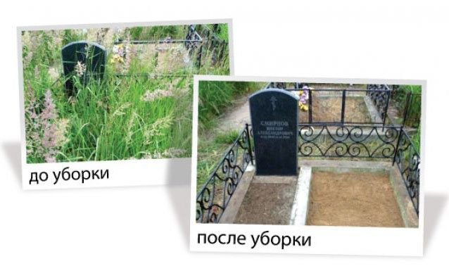 • уборка скопившегося мусора, уборка могилы от листвы, мусора, корней и засохших цветов